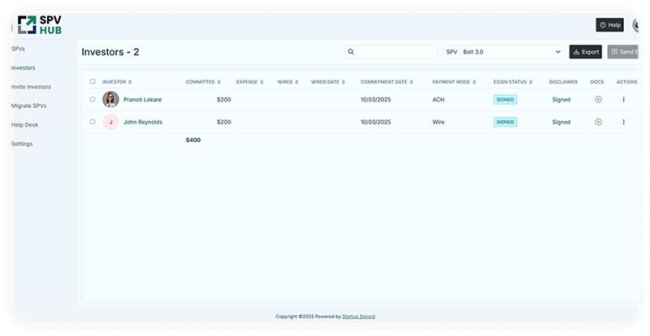 Investor onboarding and reporting are critical components of angel syndicate operations. #SPV services simplify these processes by providing a centralized platform for managing #investor information, tracking commitments, and generating reports. By using secure document management and automated processes, syndicates can onboard investors more quickly and provide them with regular information. SPV services also ensure regulatory compliance, which reduces the likelihood of errors and omissions. By reducing these administrative responsibilities, #angelsyndicates may concentrate more on identifying attractive #investment opportunities and developing strong relationships with their investors.