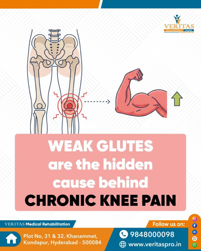 At Veritas Rehab and Hospitals in Kondapur, recognized as one of the best rehab centers in Hyderabad, our experts focus on rebuilding strength, restoring mobility, and ... moreDid you know weak glute muscles are often the hidden cause of chronic knee pain? When your glutes don’t provide enough support, your knees bear excess pressure — leading to discomfort, instability, and long-term joint issues. Strengthening these muscles through targeted physiotherapy and rehab care can make a lasting difference.