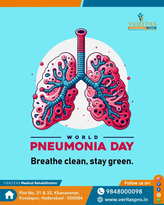 #WorldPneumoniaDay #VeritasRehabAndHospitals #PulmonaryRehab #PneumoniaRecovery #LungHealth #BreatheBetter #RespiratoryCare #RehabForLungs #HealthyBreathing #RehabCentersInHyderabad #RespiratoryRehabilitation