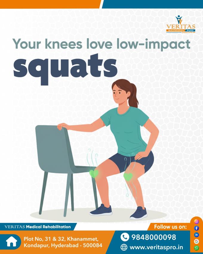 Low-impact squats are a knee-friendly way to strengthen your legs without adding unnecessary pressure. At Veritas Rehab and Hospitals in Kondapur, the best rehab center in Hyderabad, our experts guide you through safe and effective movement patterns to protect your joints while building stability and strength. 🌿