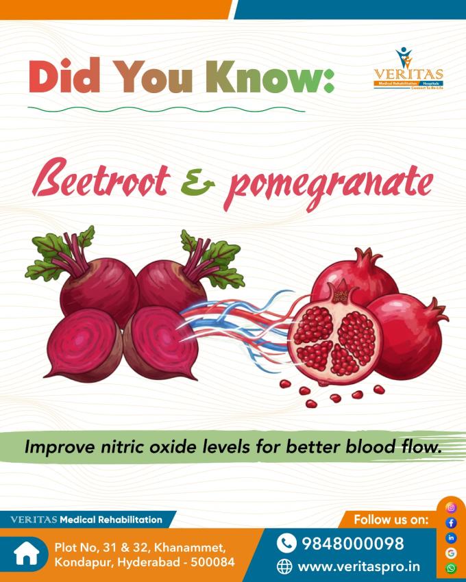 #VeritasRehabAndHospitals #BestRehabCenterInHyderabad #HeartHealth #NitricOxide #PomegranateBenefits #BeetrootBenefits #CirculationBoost #NaturalHealing #HealthyLiving #RehabNutrition #HolisticRecovery #WellnessJourney