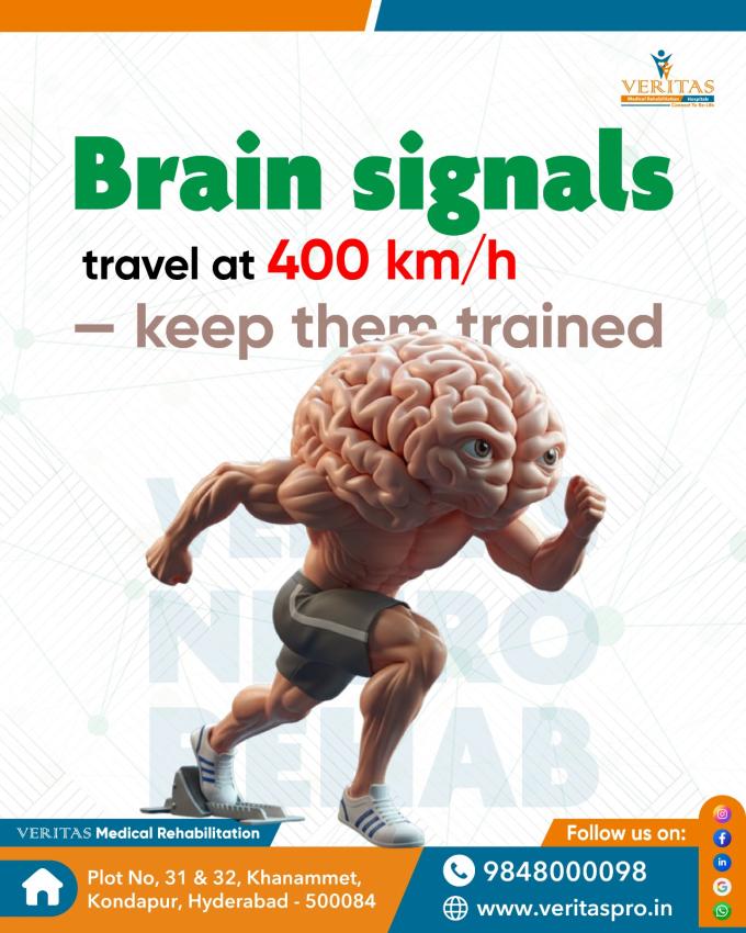 Brain signals travel up to 400 km/h, powering movement, memory, and reflexes. At Veritas Rehab and Hospitals in Kondapur, therapy helps strengthen these pathways for better coordination and control.