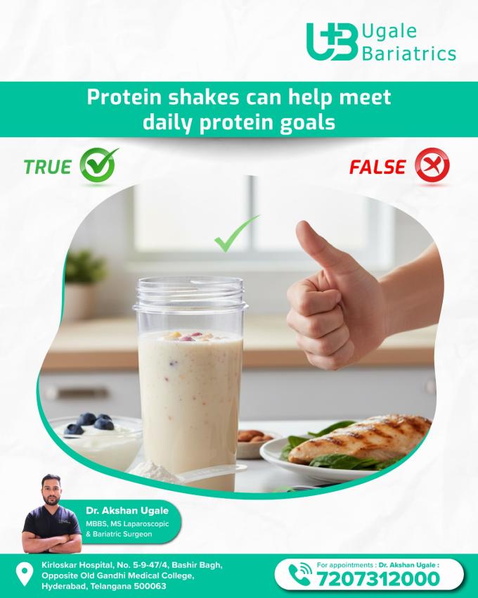 Protein shakes can help meet your daily protein goals after bariatric surgery. ✅ TRUE!
