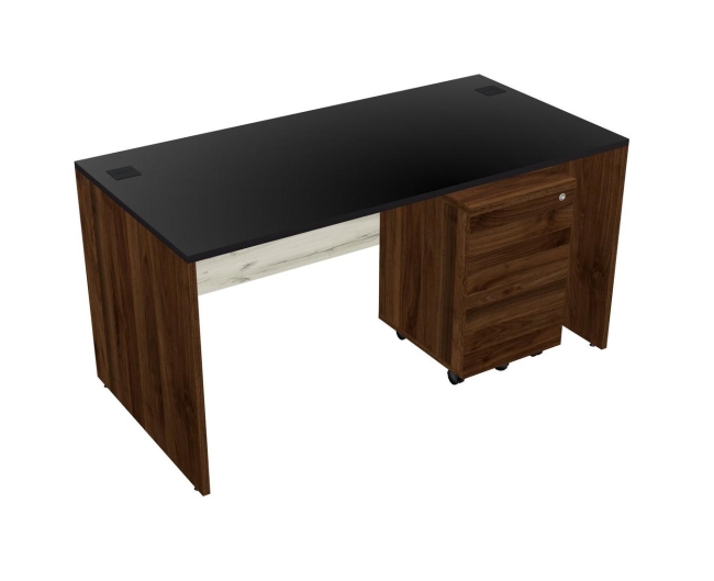 Black Rectangular Office Desk Plus Columbia Walnut Wooden Mobile Drawers - Officestock
