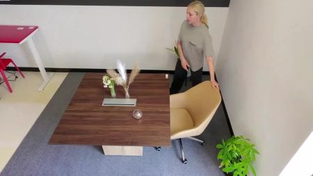 Executive Shared Reception Desk With Floating Counter + Wooden Mobile Drawers